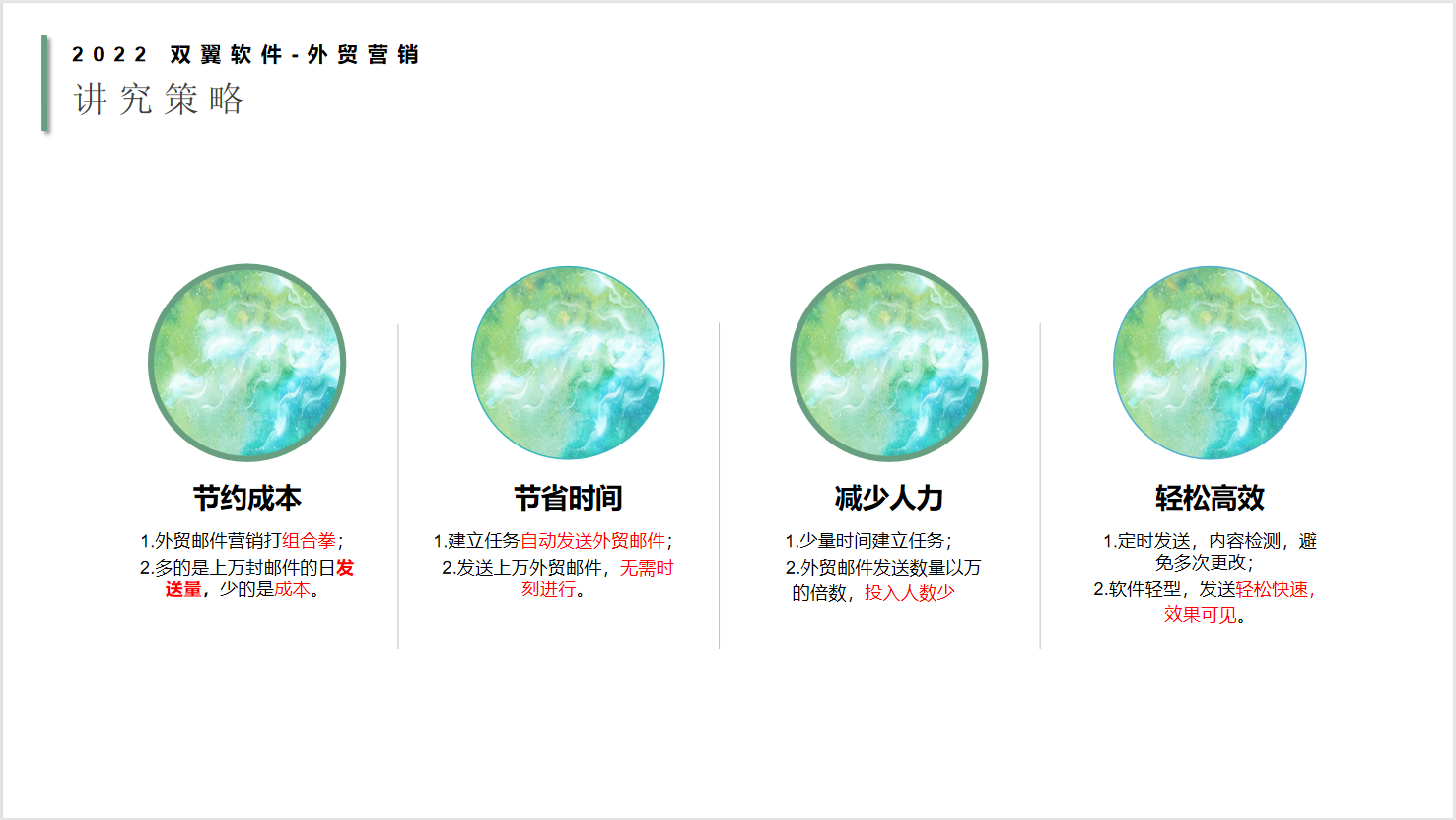 在利用软件的同时,了解国外客户的消费习惯、邮件阅读习惯等,制定外贸邮件推广时间策略,什么时间段发送;制定好外贸邮件推广频率策略,以多大的频率发送效果更好;制定外贸推广内容策略,面对客户发送相应内容的个性化邮件。